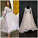 Faux Georgette with White Flower Print and pure fabric Georgette gown are suitable for Any occasions as well as for casual-wear also it is a great fabric especially for gown Lovers.💗